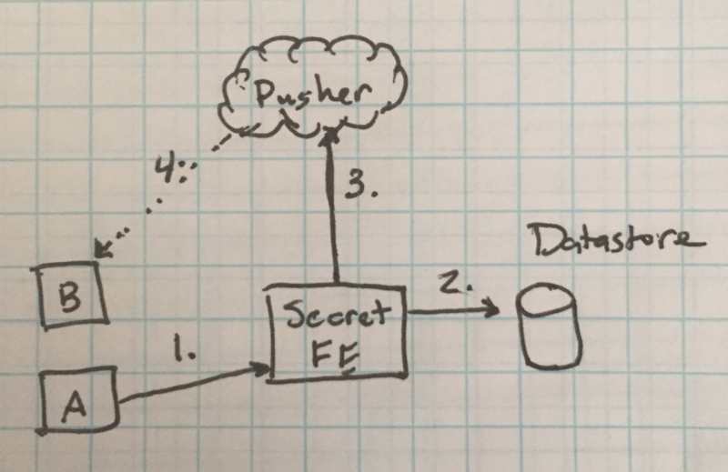 If I were to implement real-time chat in an app again, I’d strongly consider using a simple model like this again. The downside of the above architecture is that it’s not as fast as it could be (notably, because messages are routed through the Secret frontend to Pusher), but the end result was just fast, reliable and simple enough.
